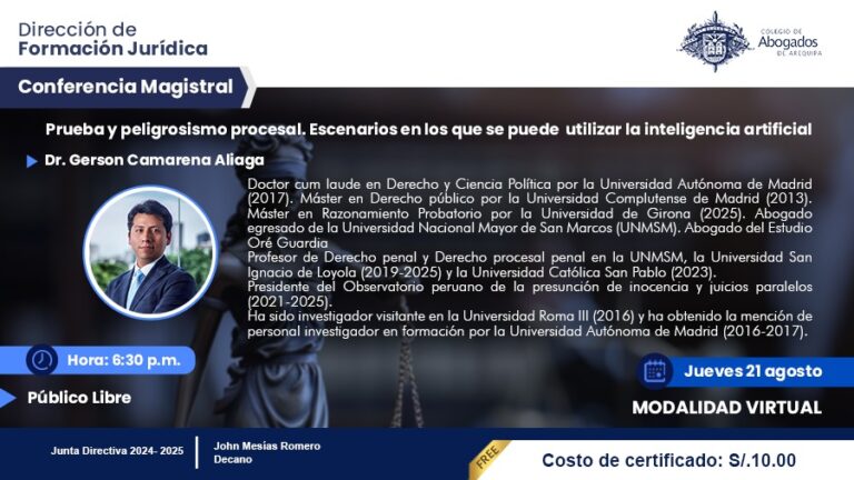 Congreso Internacional de Derecho Penal – Lucha contra la Criminalidad El Colegio de Abogados de Arequipa organiza un evento de gran relevancia internacional con la participación de ponentes de Perú, El Salvador, Chile y España.…