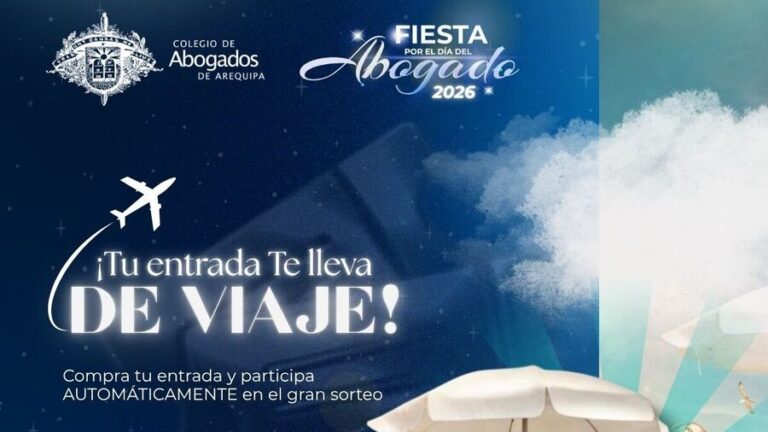 ¡Tu entrada te lleva de viaje! Participa automáticamente en el gran sorteo y gana increíbles premios Vive la Fiesta por el Día del Abogado 2026 Cupos limitados Requisitos: Estar agremiado y al día hasta marzo de 2026 El ticket es personal…