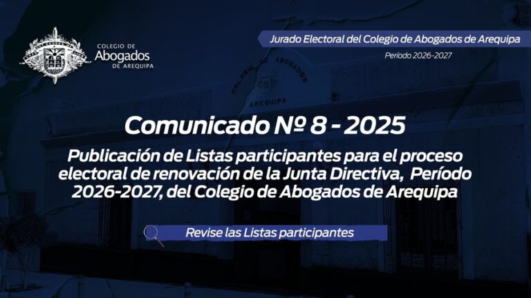 leer masComunicado Nº 008-2025 JE-CAA Actuando con la debida transparencia, ponemos en conocimiento de los miembros de la orden que en cumplimiento del Art. 102 del Estatuto del Ilustre Colegio de Abogados y del Cronograma publicado;…