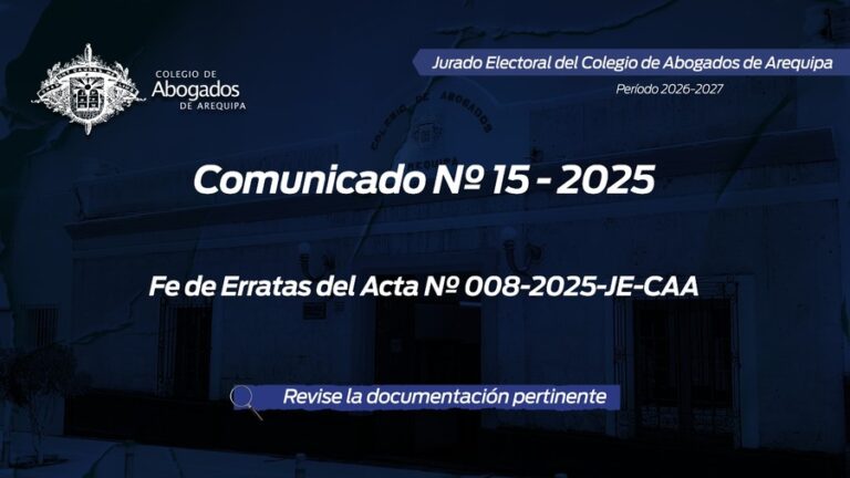 leer masComunicado N.º 015-2025 JE-CAA Los Miembros del Jurado Electoral del Colegio de Abogados, ponen a conocimiento de los miembros de la orden, la Fe de erratas de acuerdo al Acta nro. 008-2025-JE-CAA Revisar documentación adjunto…