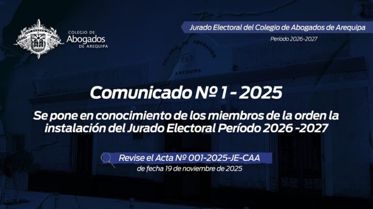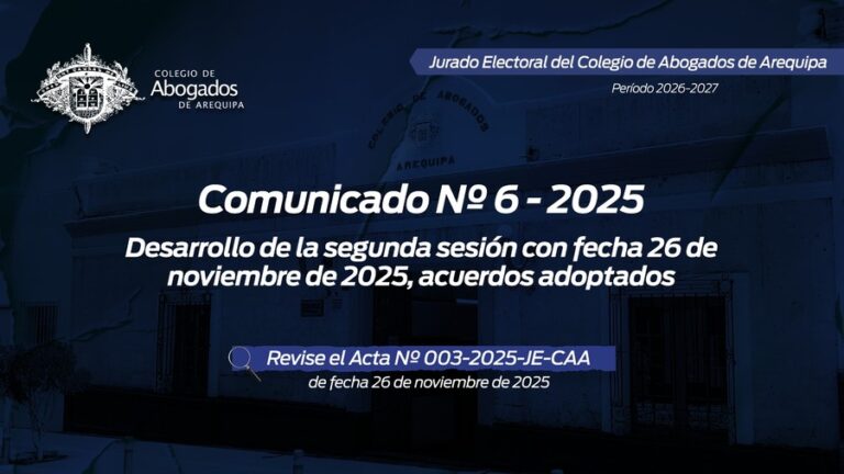 Comunicado Nº 006-2025 JE-CAA Actuando con la debida transparencia, ponemos de conocimiento de los miembros de la orden, el desarrollo de la segunda sesión con fecha 26 de noviembre de 2025 y acuerdos adoptados por…