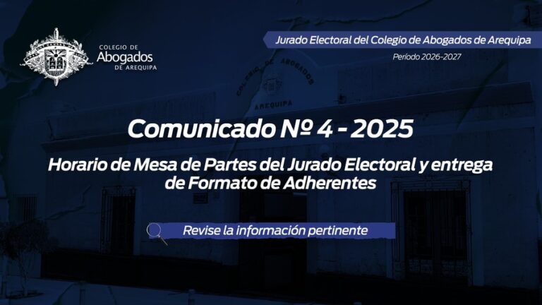 leer masComunicado Nº 004-2025 JE-CAA Ponemos de conocimiento de los miembros de la orden, el Horario de Mesa de Partes del Jurado Electoral y entrega de Formato de Adherentes.