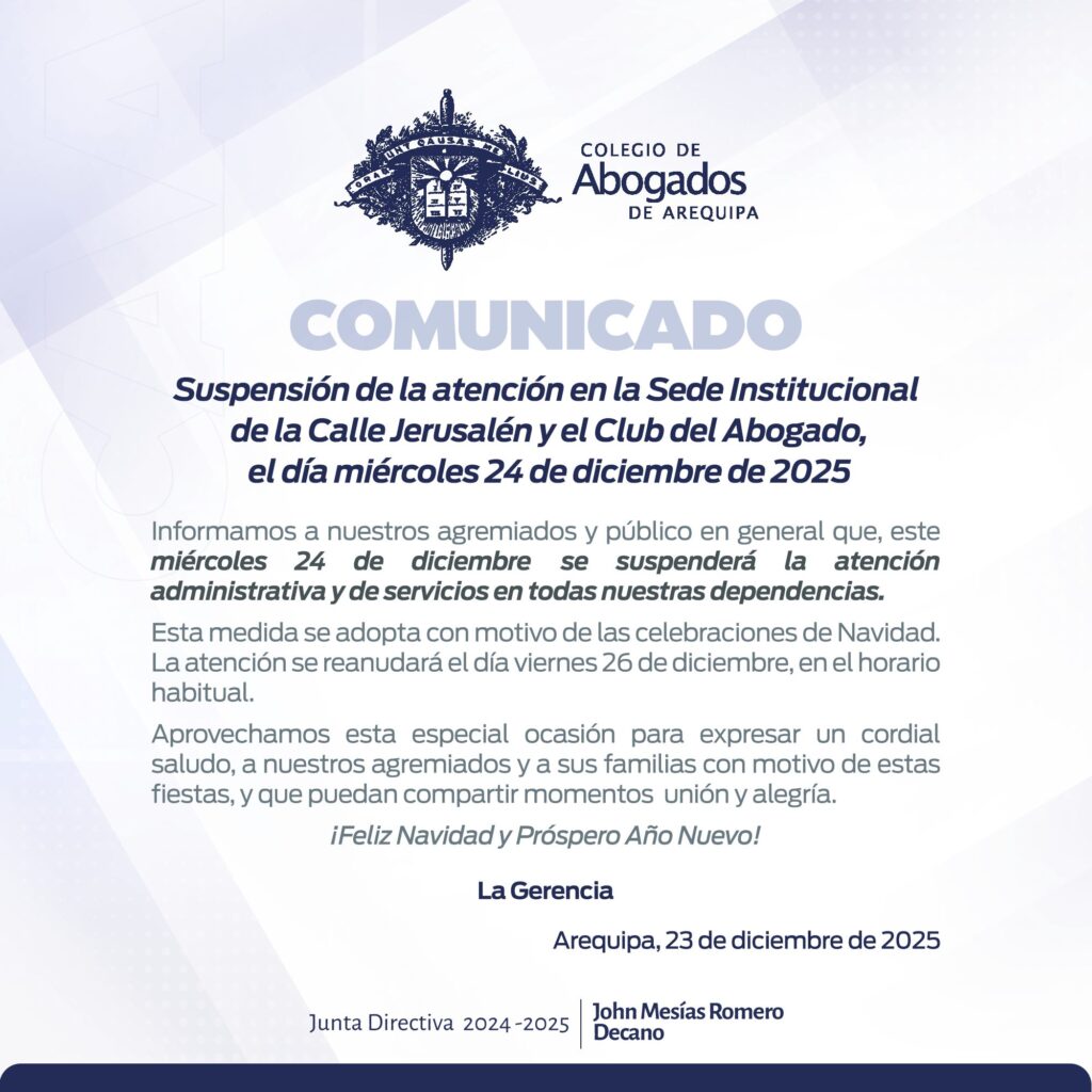 Comunicado Atención 24/12/2025 Comunicado Atención 24/12/2025 https://www.caa.org.pe/wp-content/uploads/2025/06/comunicado-cover.jpg 900 506 Sistemas Sistemas https://secure.gravatar.com/avatar/a0bb276db84b54af3f2dcafdec208124ac5f95e0503dbc5fe96520ec00a24d32?s=96&d=mm&r=g 23 diciembre, 2025 23 diciembre, 2025