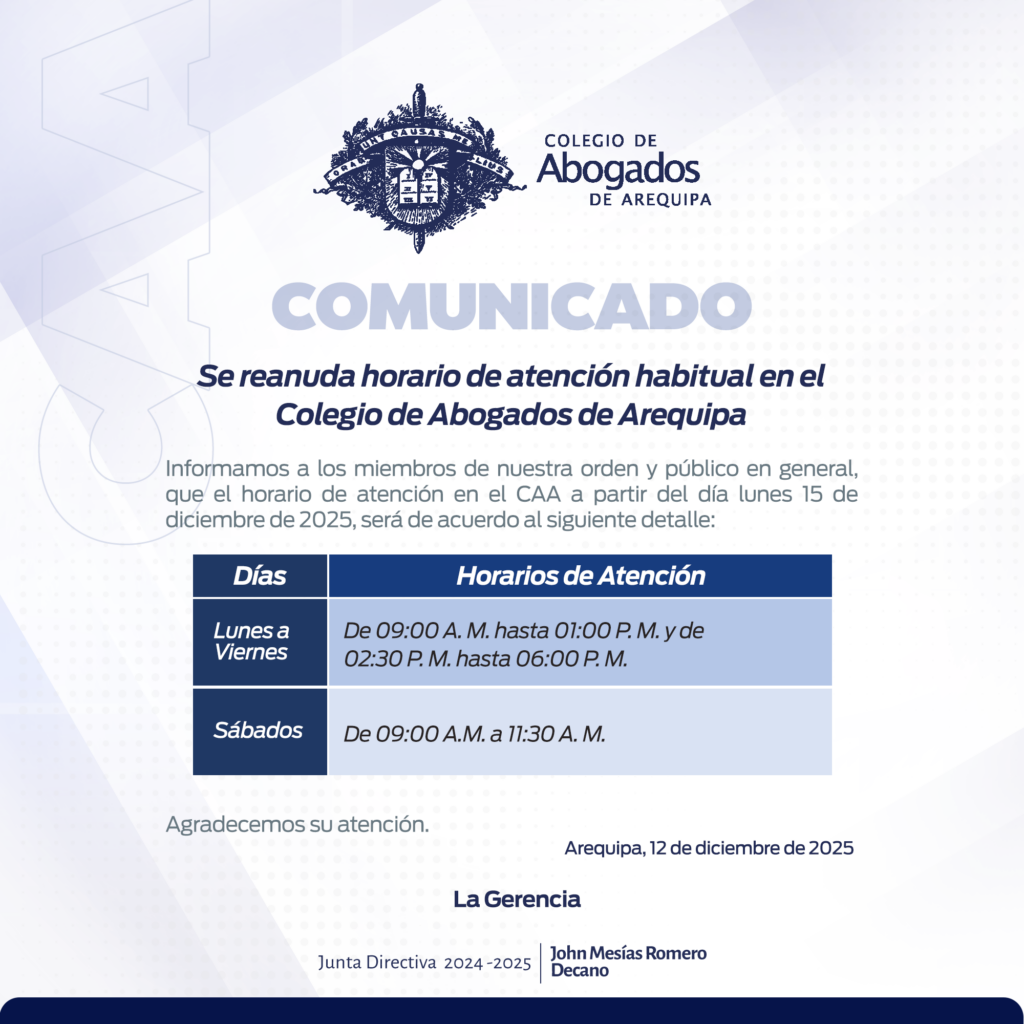 Comunicado Horario 12/12/2025 Comunicado Horario 12/12/2025 https://www.caa.org.pe/wp-content/uploads/2025/06/comunicado-cover.jpg 900 506 Sistemas Sistemas https://secure.gravatar.com/avatar/a0bb276db84b54af3f2dcafdec208124ac5f95e0503dbc5fe96520ec00a24d32?s=96&d=mm&r=g 12 diciembre, 2025 12 diciembre, 2025