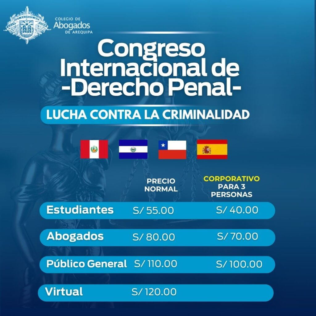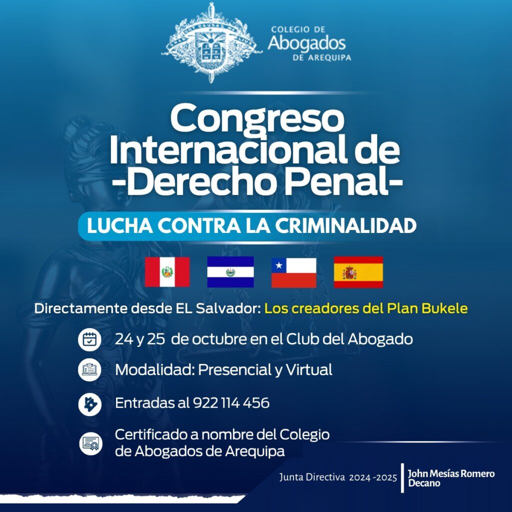 El Colegio de Abogados de Arequipa organiza un evento de gran relevancia internacional con la participación de ponentes de Perú, El Salvador, Chile y España.