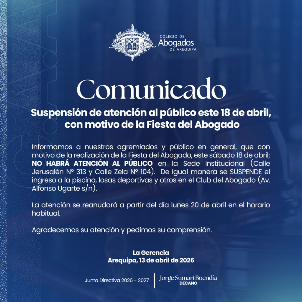 Suspensión de atención al público 18 de abrilhttps://www.caa.org.pe/wp-content/uploads/2026/04/cover-comunicado-atencion-sabado-dia-del-abogado.jpg900506SistemasSistemashttps://secure.gravatar.com/avatar/a0bb276db84b54af3f2dcafdec208124ac5f95e0503dbc5fe96520ec00a24d32?s=96&d=mm&r=g